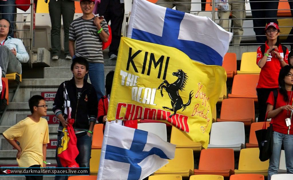 Aww, the banners are great. They must give Kimi such a good feeling, to see his fans supporting him. :)It was also nice of him to acknowledge the fans. They must have worked really hard on those banners. They’re really huge and nicely done. 🙂