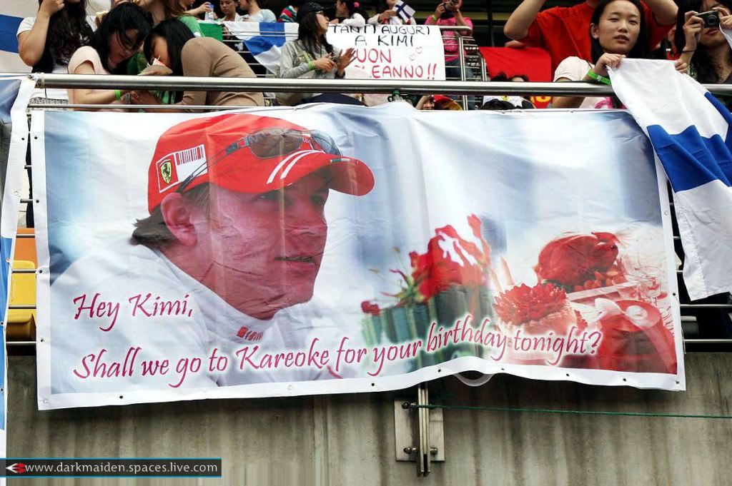 Wah…. really nice banners from China fan!!! I like the "Hey Kimi, Shall we go to Kareoke for your birthday tonight" HaHaHa… I would love to hear Kimi sing :))