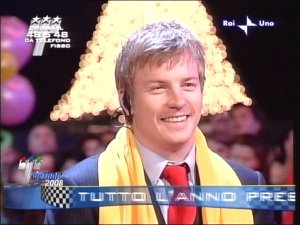 https://i0.wp.com/img236.imageshack.us/img236/6773/krsevenstarsmall3aat2.pngThese two videos are from the events held in Italy last weekend, as earlier mentioned in the ‘Busy December‘ post. After the FIA Gala on Friday evening, Kimi and Ferrari were taking part in the "Caschi d’Oro" on Saturday, a prize giving event, which the Italian team hold every December. The second video shows Kimi, Felipe and team boss Stefano Domenicali in Italian tv show ‘Domenica In’ on Sunday evening, where children from the team’s employees are invited. It’s a very seasonal event, with snow and decorations about and a relaxed and enjoyable time for the team. You can clearly see Kimi having a nice time in the video with the kids. (See more pictures of these events and don’t miss the video of Kimi at the FIA Gala here – all thanks to Tania of the Official forum!)