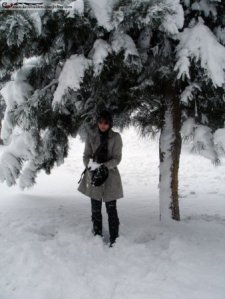 WOW! I´m still amazed at how much snow there is!!! That pic of the park is wonderful….aww, I love the snowman! And you look lovely as usual!