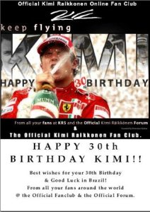 happy birthday Kimi,hope you have good race in this weekend like you have in brazil 2007