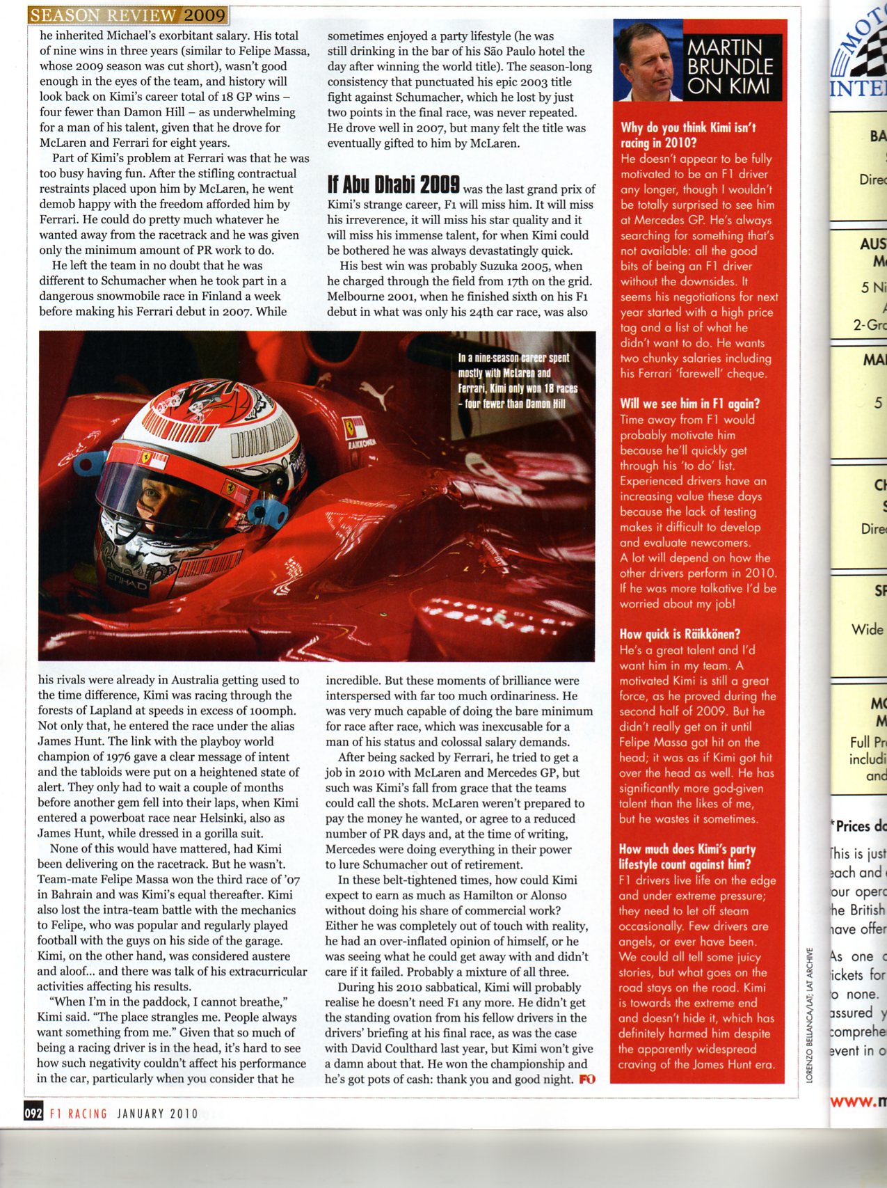 like it was "strangling" him. These are things which need to be read… I’ll let you decide for yourselves. The fourth page is another opinion piece debating whether Kimi still deserves a seat in F1, where Red Bull boss Christian Horner argues yes for Kimi and Damon Hill against. Well, it’s good to know there’s at least one team boss in favour Kimi and whom he hasn’t worked with… yet!