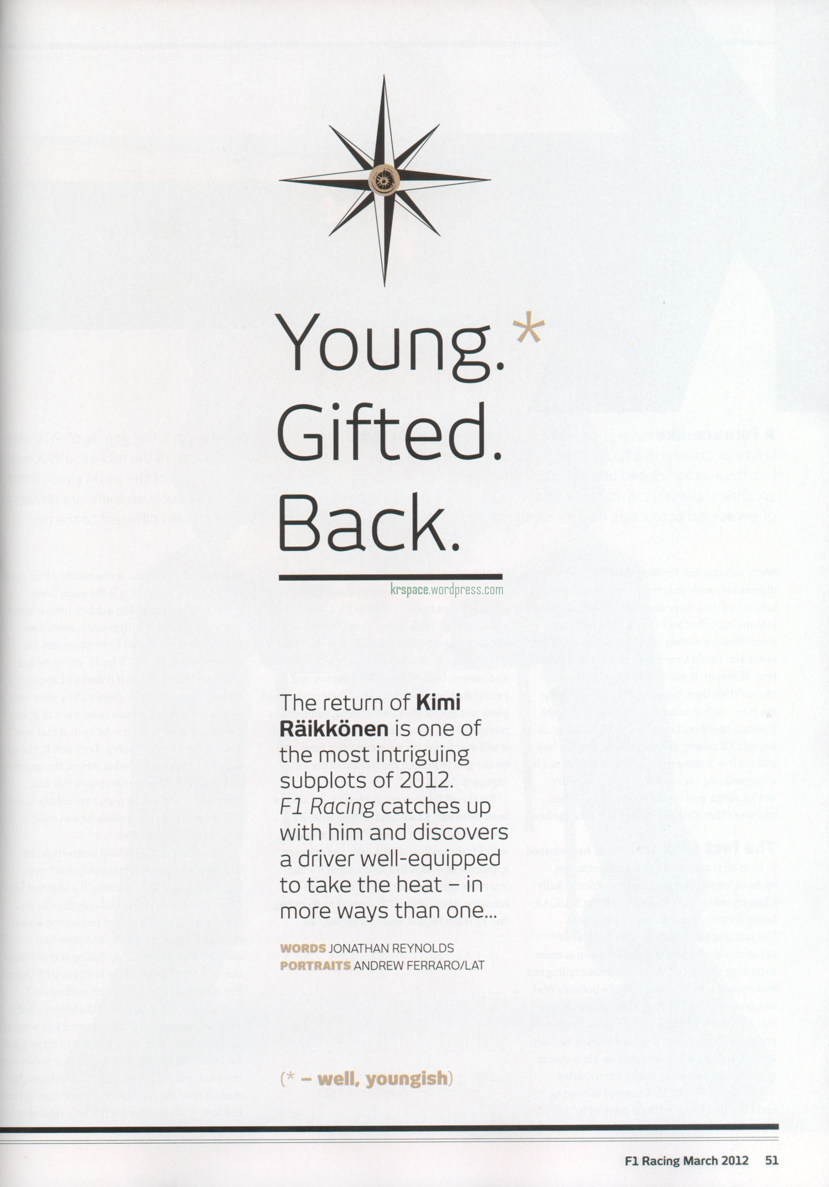 1 thought on “New interviews with Kimi: Young. Gifted. Back.