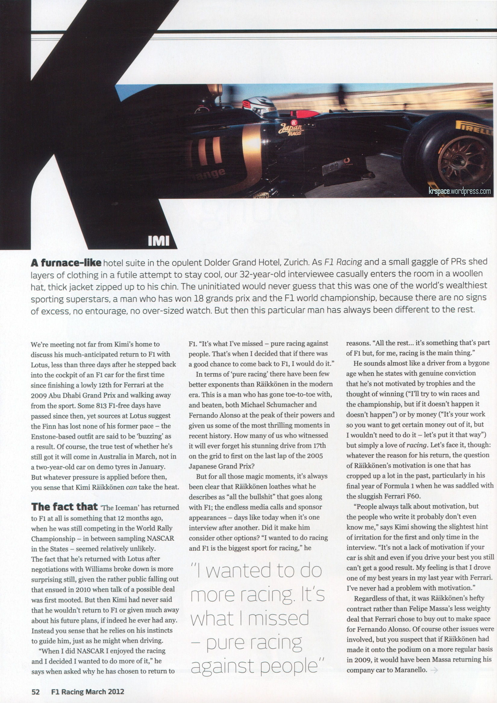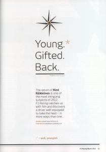 We have scanned these great interviews with Kimi from Autosport’s 16th February issue and F1Racing magazine’s latest March issue. Enjoy!