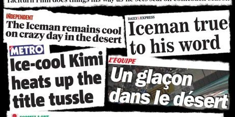“Räikkönen’s nickname is the Iceman and if he ever needed to be cool, it was here in the dry, punishing heat of Abu Dhabi with the hot breath on his neck of the two men in F1 who are on fire.”
