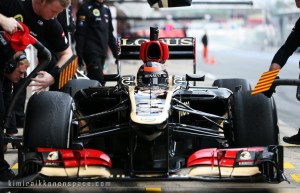 Kimi Raikkonen (FIN) Lotus F1 E21 in the pits.
