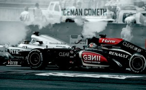 Kimi Raikkonen, Lotus F1, 2nd position, arrives in Parc Ferme.