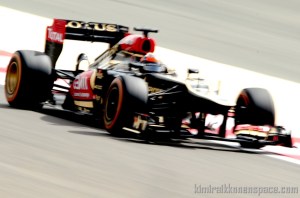 Lotus F1 Team’s Finnish driver Kimi Raikkonen drives on April 19, 2013 during the second practice session at the Bahrain International Circuit in Manama ahead of the Bahrain Formula One Grand Prix. AFP PHOTO / TOM GANDOLFINI (Photo credit should read Tom Gandolfini/AFP/Getty Images)