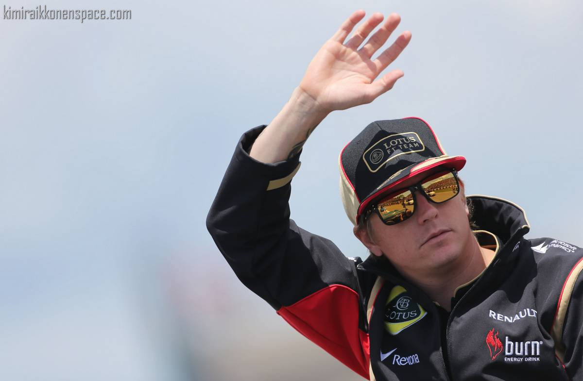 Kimi Raikkonen (FIN) Lotus F1 Team on the drivers parade.