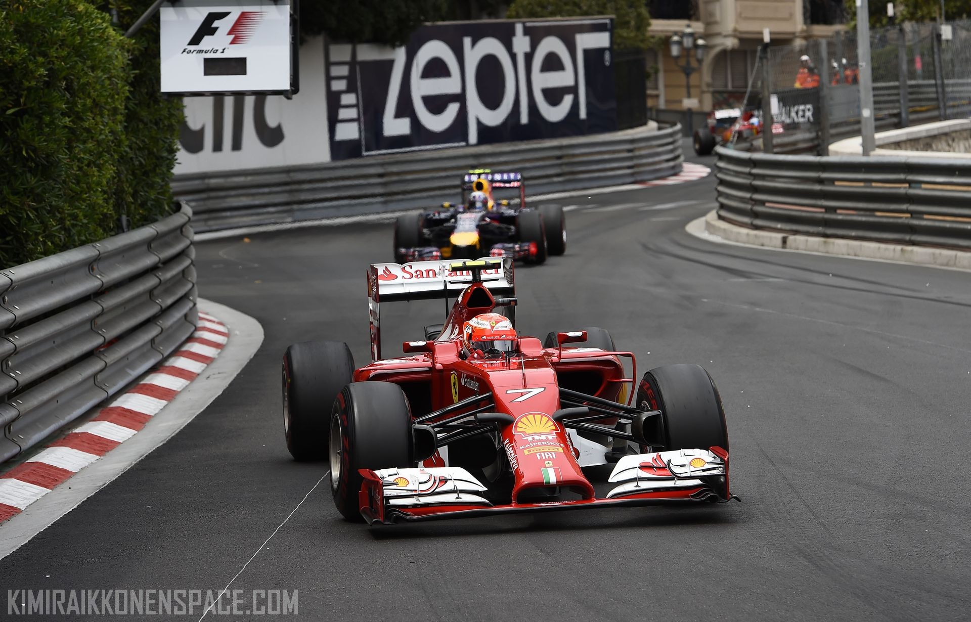 Raikkonen was running third when the safety car was called out to clear Adrian Sutil’s crashed Sauber at the Nouvelle Chicane. When lapped cars were allowed to repass, Chilton made contact with Raikkonen at Mirabeau causing a puncture and forcing the Ferrari to pit again.