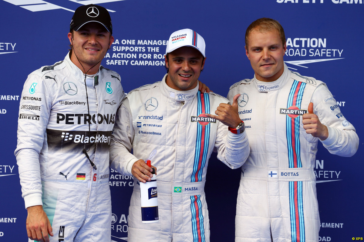 Felipe Massa led a shock Williams one-two in qualifying for the Austrian Grand Prix. The Brazilian’s last-gasp effort knocked team-mate Valtteri Bottas off top spot in the final seconds of qualifying, giving him pole by just under a tenth of a second.